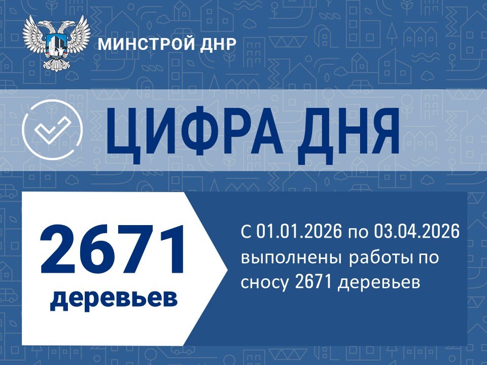 Всего за период с 01.01.2026 по 03.04.2026 выполнены работы по сносу 2671 деревьев и работы по кронированию 19 деревьев.
