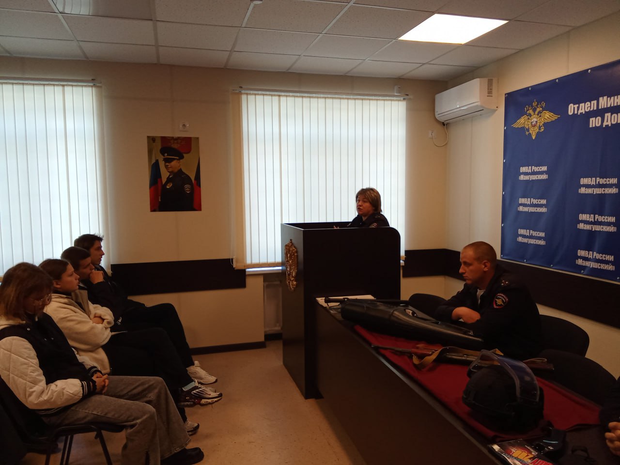 В целях профилактики правонарушений среди подростков, а также повышения престижа службы в органах внутренних дел представители службы по делам несовершеннолетних совместно с коллегами из отделения по работе с личным составом провели для старшеклассников Мангушской общеобразовательной школы №2 обзорную экскурсию по отделу МВД России «Мангушский».
