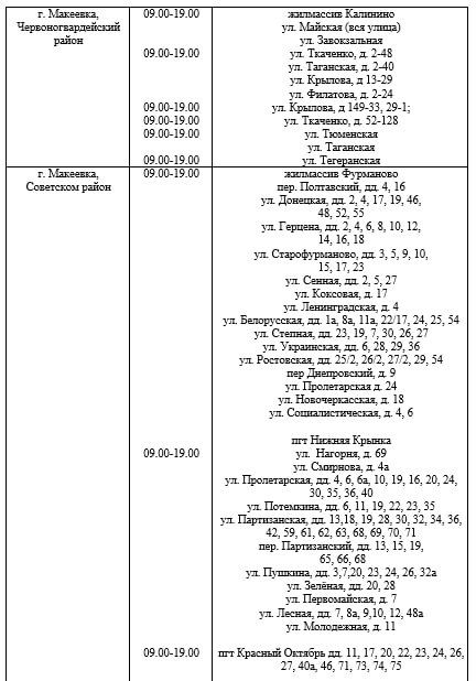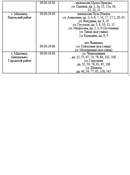 График подвоза воды населению городского округа Макеевка