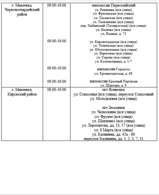 График подвоза воды населению городского округа Макеевка