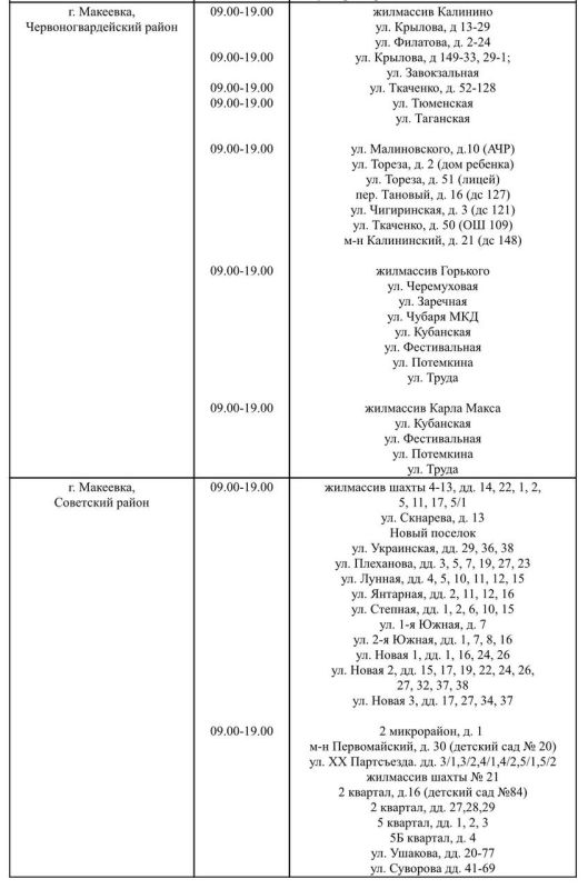 По информации ГУП ДНР "Вода Донбасса", с 30 по 31 октября 2025 года будет проведена дезинфекция специального оборудования (емкости с водой объемом 100 кубических метров) и водопроводных сетей в частном секторе на улицах Тухачевского...