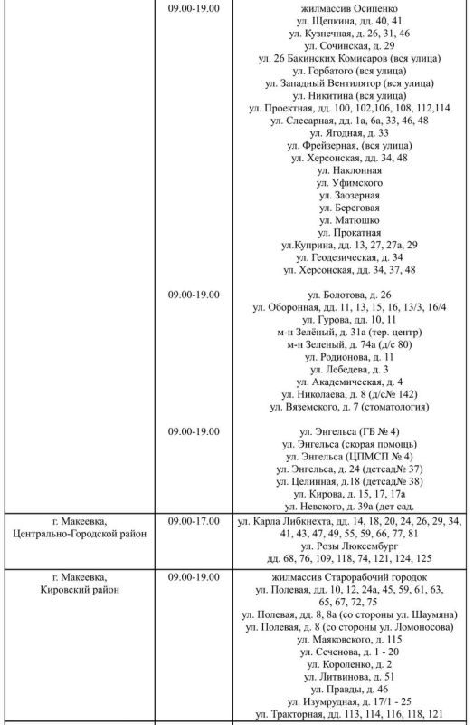 График подвоза воды населению городского округа Макеевка