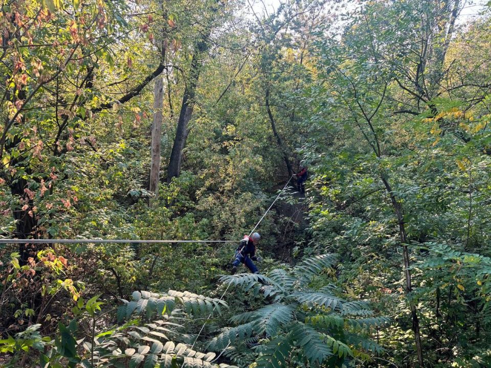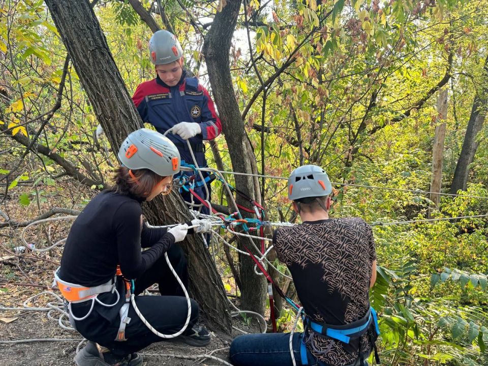 Вместе отработали преодоление препятствий при помощи навесной переправы, а также повторили информацию про основные узлы, применяющиеся в спасательных работах.