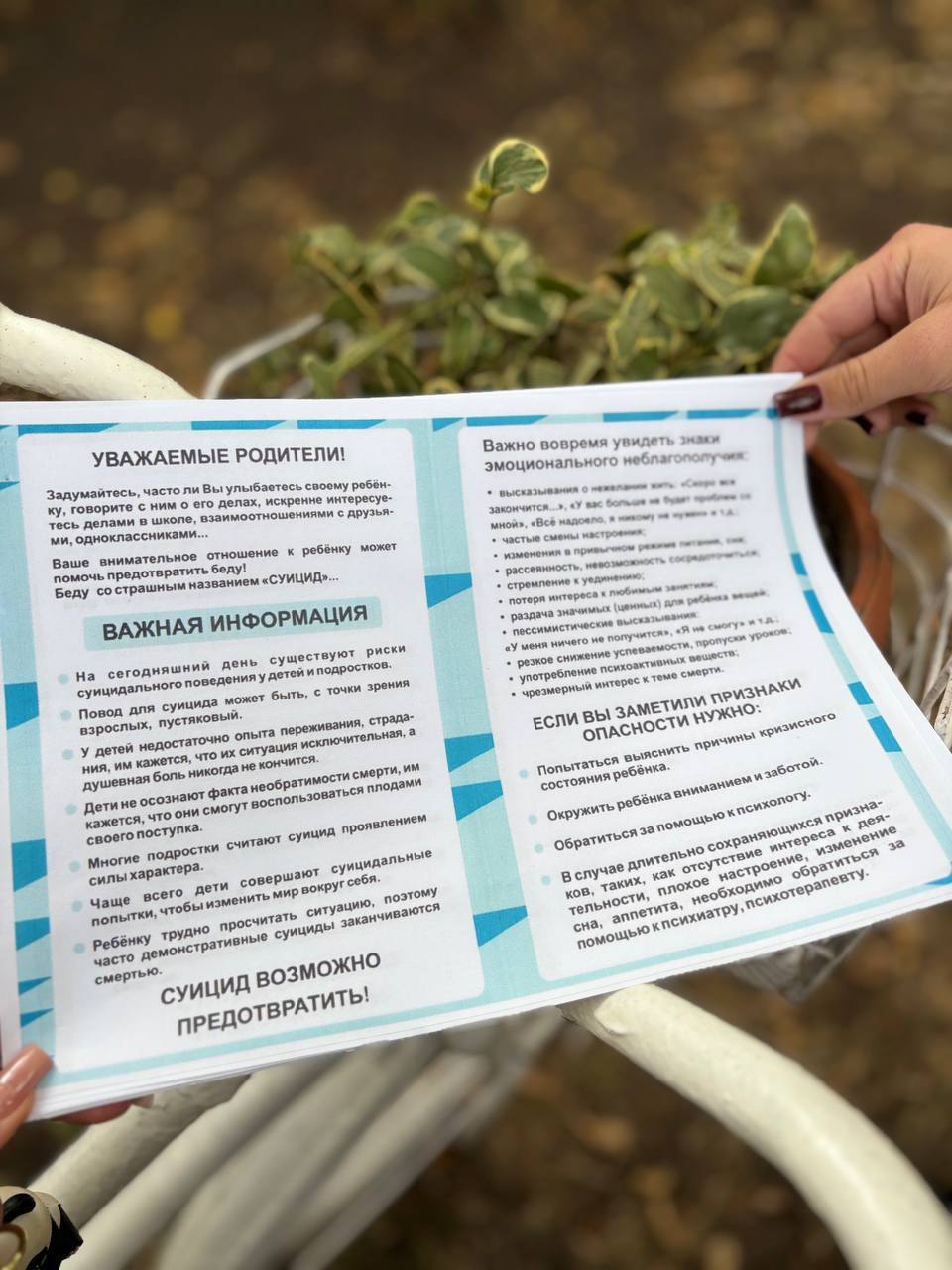 «Мы уверены: ваше внимание, информированность и готовность протянуть руку помощи могут спасти чью-то жизнь. Если вам или вашим близким тяжело — пожалуйста, не оставайтесь наедине с бедой. Вы не одни. Обращайтесь к нам, профессионалы всегда готовы помочь».