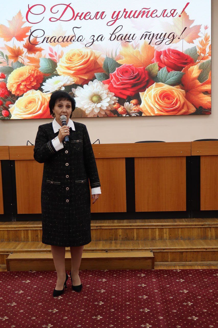 Поздравила присутствующих с профессиональным праздником, отметив что образование было и остается важнейшей составляющей в становлении и развитии каждого человека, а роль и заслуги учителей в этом процессе, их вклад в развитие общества неоценимы.