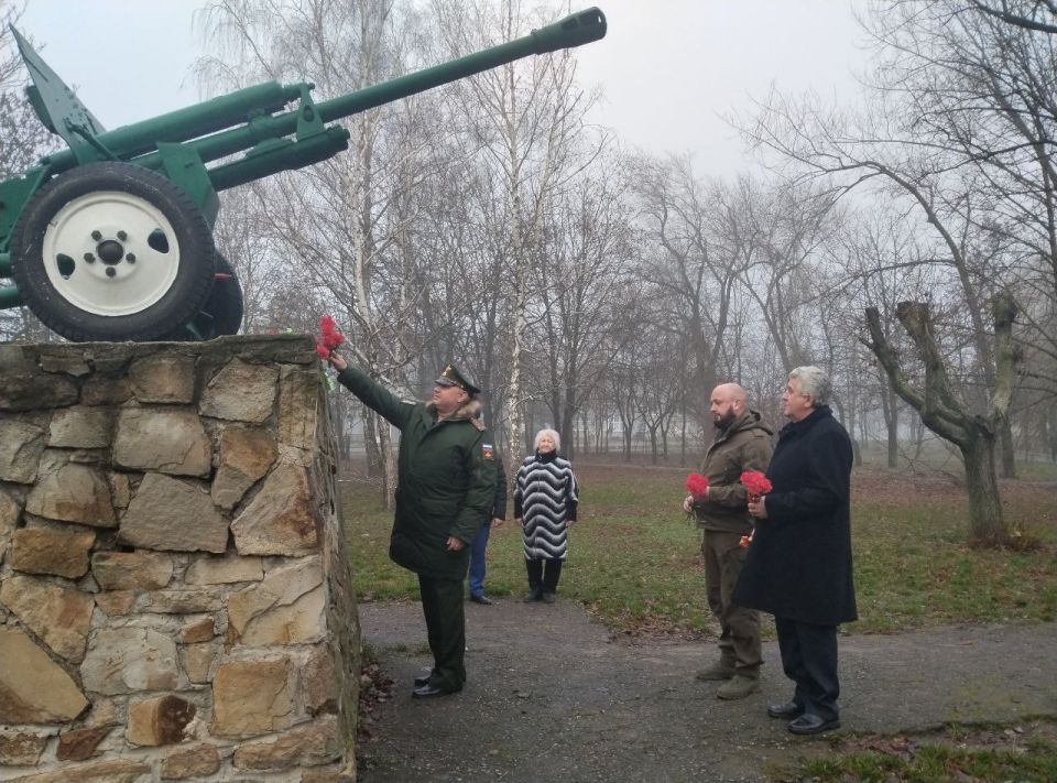 В этот памятный день руководитель Управы Червоногвардейского внутригородского района Администрации городского округа Макеевка, секретарь местного отделения Общественного Движения «Донецкая Республика» Червоногвардейского района города Макеевки Антон Гринзовский, депутат Макеевского городского совета ДНР первого созыва Сергей Щетинин, военный комиссар военного комиссариата (Горняцкого и Червоногвардейского районов города Макеевка) Василий Кувыкин, социальный координатор государственного фонда поддержки участников специальной военной операции «Защитники Отечества» Леонид Присенко и председатель Червоногвардейской районной организации ветеранов Галина Комар почтили память погибших воинов минутой молчания и возложили цветы к памятнику «Пушка», установленного в честь 50-летия Победы в Великой Отечественной войне 1941-1945 г.г. в одноименном сквере «50-летия Победы».