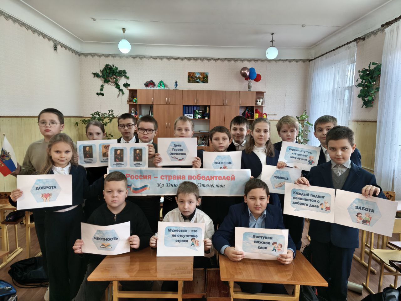 Ребята говорили о Героях, которыми сильна Россия. Это те, кто во все времена выбирал долг и правое дело. Эта традиция живёт и сегодня: в самоотверженности и стойкости солдат, врачей, спасателей, помощи волонтёров, в небезразличии людей всей страны. В честь выдающихся людей называют улицы, школы, устанавливают памятники и мемориальные доски, открывают Парты Героев.