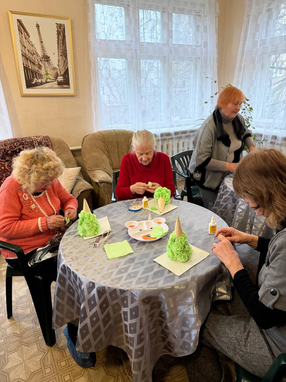 В мероприятии приняли участие координаторы проекта, сотрудники и подопечные территориального центра. Мероприятие началось с короткого рассказа об истории новогодних игрушек, посмотрели примеры старинных и современных украшений. Это помогло участникам настроиться на творческий лад и выбрать идею для своей работы. На столах — всё необходимое для творчества: бумага разных фактур, вата, фетр, пряжа, блёстки и прочие материалы.