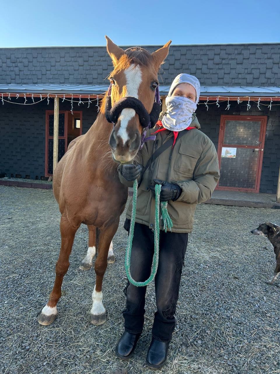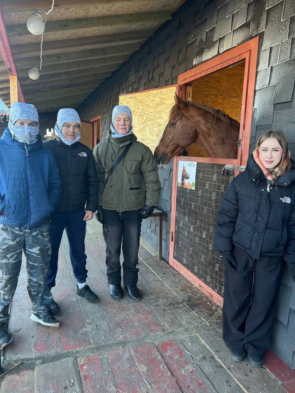 Учащиеся отправились на встречу с четвероногими друзьями. Ребята с азартом угощали лошадей вкусными лакомствами, а затем дружно взялись за дело, помогая убирать их стойла.