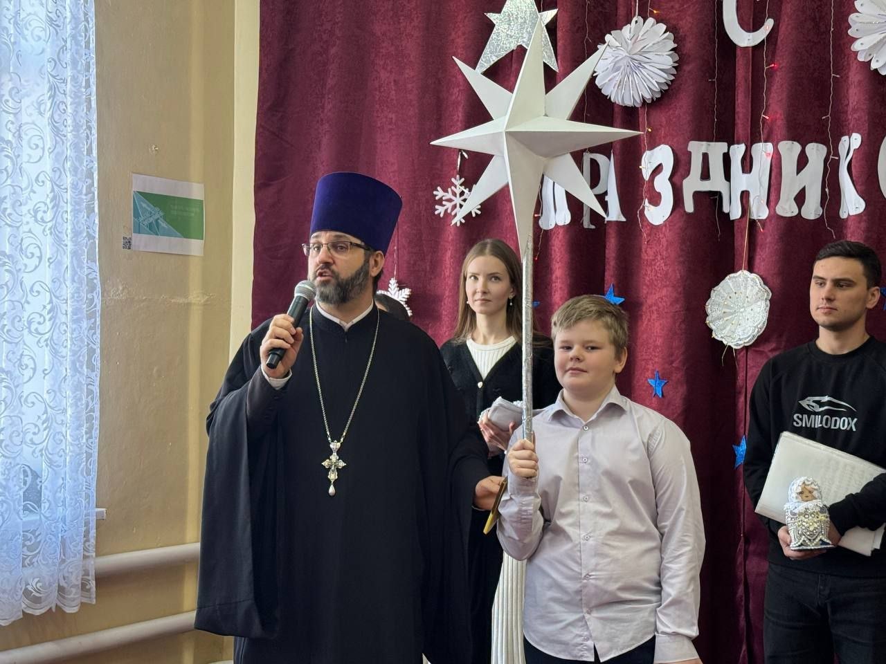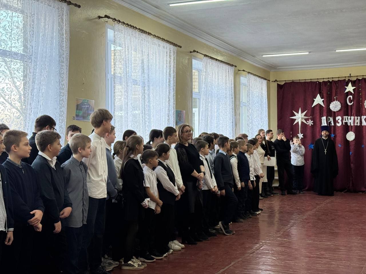 16 января в ГБОУ "СШ № 95 Г.О. МАКЕЕВКА" состоялось знаменательное событие: ребята принимали настоятеля храма Рождества Христова Георгиевского благочиния города Макеевки, протоиерея Ростислава Карпуся, а также представителей архиерейского хора центрального собора города. Мероприятие состоялось с целью реализации проекта "Культура малой Родины".