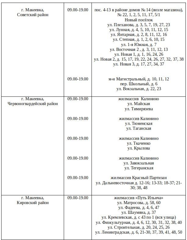 График подвоза воды населению городского округа Макеевка