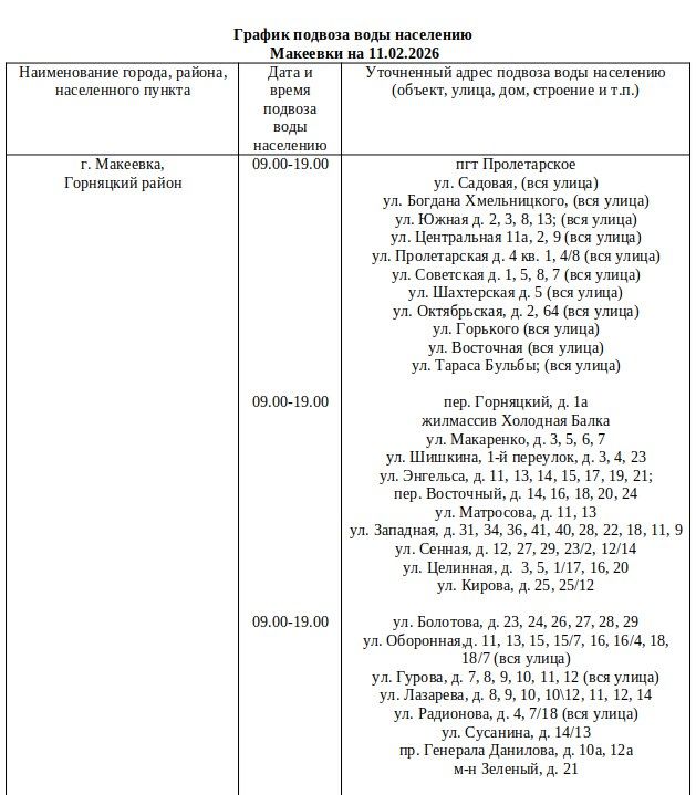Сегодня, 11 февраля, в Макеевке будет организован подвоз воды для жителей, в дома которых не поступила вода в установленный графиком день.