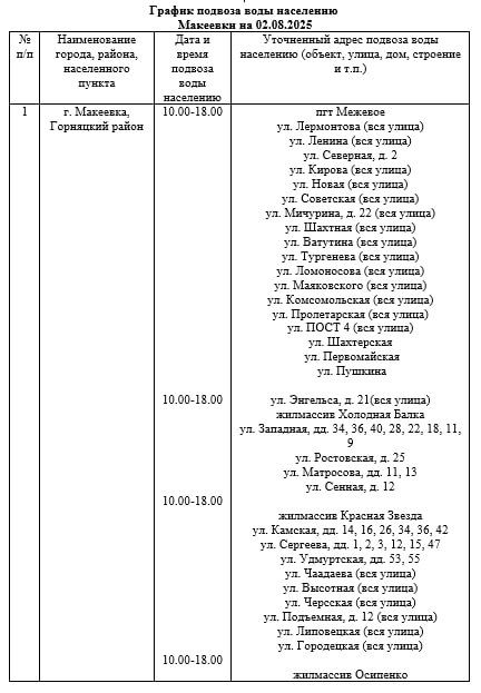 Сегодня, 2 августа, в Макеевке будет организован подвоз воды для жителей, в дома которых из-за недостаточного количества подаваемой воды не поступила вода в установленный графиком день.
