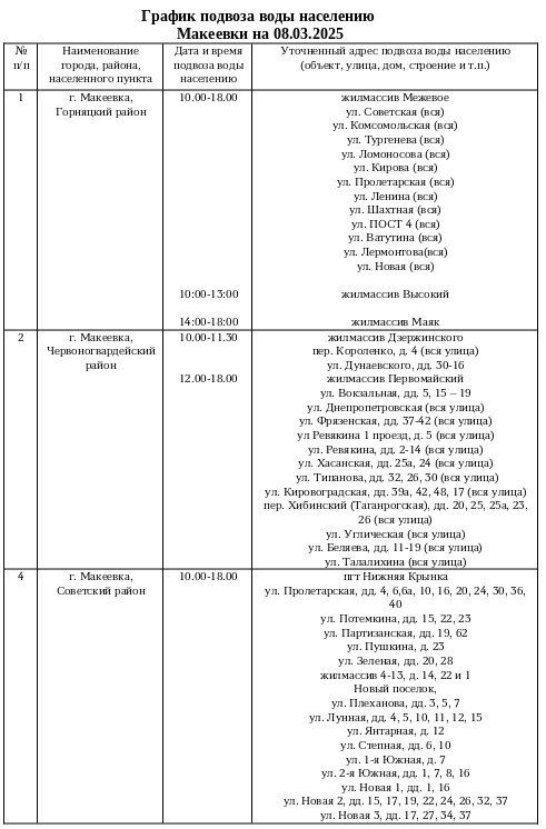 Завтра, 8 марта, в Макеевке будет организован подвоз воды для жителей, в дома которых из-за недостаточного количества подаваемой воды не поступила вода в установленный графиком день.