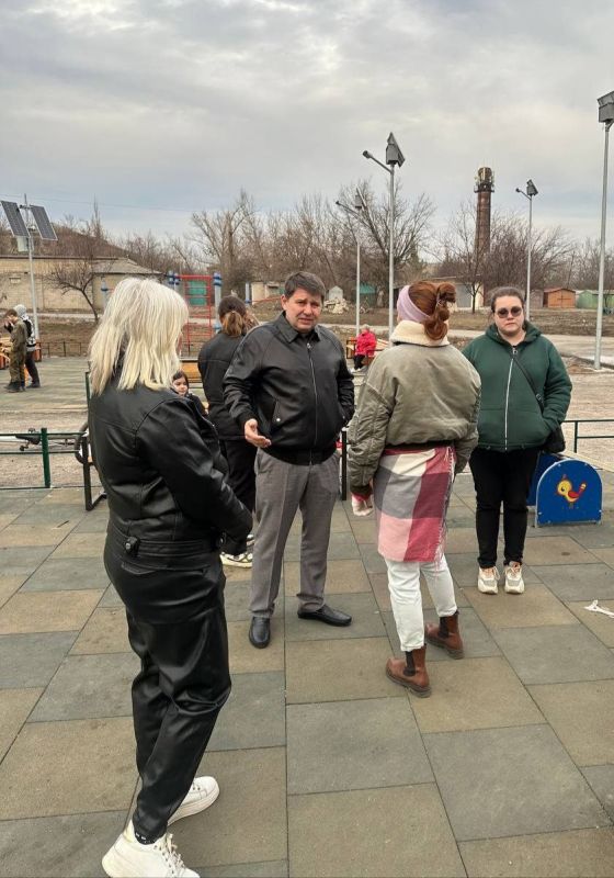 В рамках объезда города посетил детские площадки, которые были установлены несколько месяцев назад.