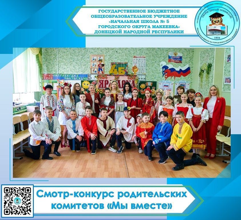 В рамках проекта «Новая школа», с целью повышения роли родительских сообществ в воспитании активных, ответственных граждан РФ и сохранения традиционных семейных ценностей, ГБОУ «НШ № 5 Г.О. МАКЕЕВКА» принимает участие в смотре-конкурсе родительских комитетов «Мы вместе», организованном департаментом образования Администрации городского округа Макеевка. В школьный оргкомитет поступило 10 заявок