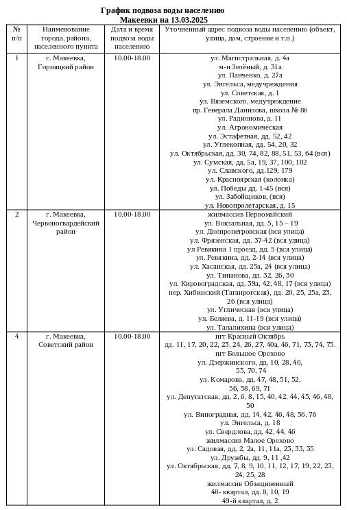 График подвоза воды населению городского округа Макеевка