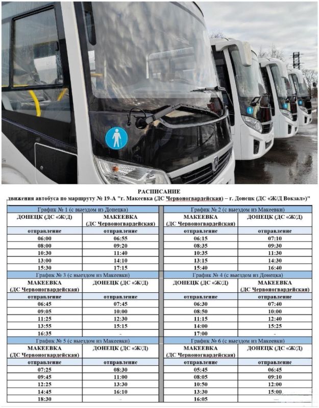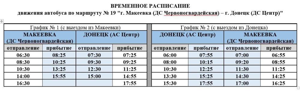 Расписание графиков движения автобусов по маршруту № 19-А, 19 - в карточках Министерства транспорта ДНР