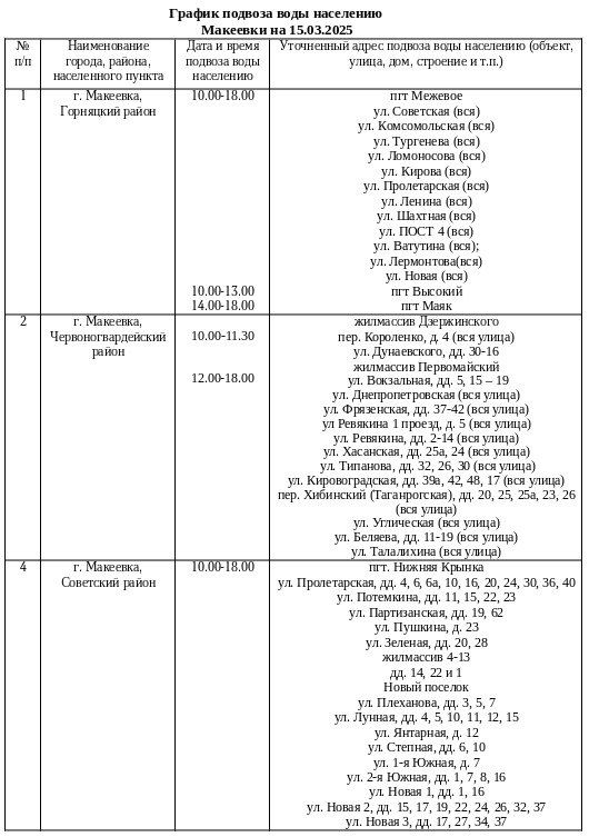 График подвоза воды населению городского округа Макеевка