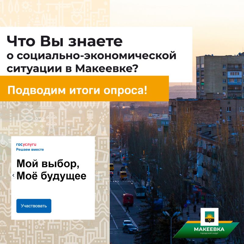 В опросе на портале «Госуслуги» вы поделились своим мнением по поводу социально-экономической ситуации в Макеевке, существующих проблемах и перспективах развития. Теперь подведём итоги.