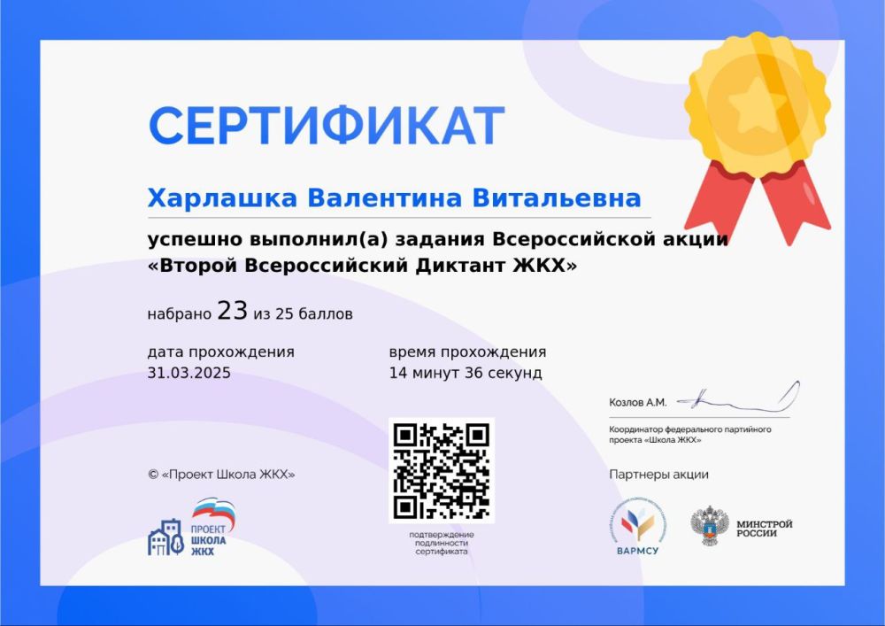 Валентина Харлашка: Сегодня проверила свои знания в сфере ЖКХ, приняв участие в акции "Второй Всероссийский диктант ЖКХ" по партийного проекту Единой России "Школа ЖКХ"