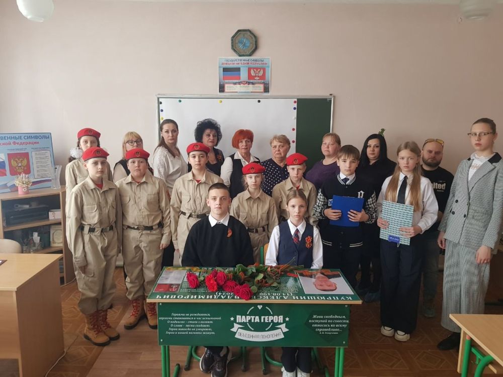 Сегодня, 01.04.2025 года, в ГБОУ "СШ №18 Г.О. МАКЕЕВКА" состоялось торжественное открытие "Парты Героя" в честь выпускника школы, Купрюшина Алексея Владимировича , трагически погибшего 11.07.2024 года в ходе выполнения специальной военной операции. За боевые заслуги Алексей был награжден Орденом Мужества и Орденом Святого Георгия.