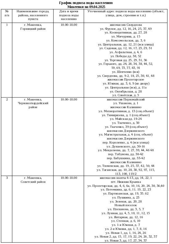 Завтра, 9 апреля, в Макеевке будет организован подвоз воды для жителей, в дома которых из-за недостаточного количества подаваемой воды не поступила вода в установленный графиком день.