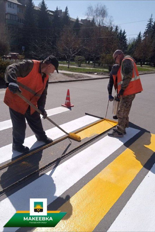 Для повышения безопасности движения транспорта и пешеходов специалисты «Перспективы» осуществляют нанесение дорожной разметки в районе автобусных остановок «Север» и «Пушка» по улице Ленина.