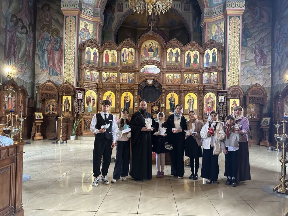 16.04.2025 года всех ангелочков дети и преподаватели отвезли в Храм Святого Архистратига Михаила города Макеевки.Дети с большим удовольствием передали все поделки отцу Дмитрию.
