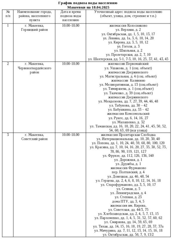 Завтра, 18 апреля, в Макеевке будет организован подвоз воды для жителей, в дома которых из-за недостаточного количества подаваемой воды не поступила вода в установленный графиком день.