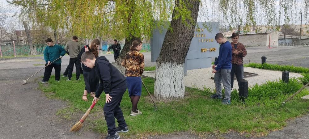 Сотрудниками и учащимися ГБОУ «Основная школа № 40 городского округа Макеевка» проведены работы по приведению в надлежащее санитарное состояние «Братской могилы советских воинов Южного фронта», расположенной на территории школьного двора по ул. Маяковского.