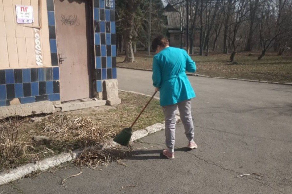 Сегодня, 17 апреля, в рамках «Мероприятий по благоустройству и наведению санитарного порядка на территории муниципального образования городского округа Макеевка в марте-мае 2025 года» сотрудниками ГБУ ДНР «Городская стоматологическая поликлиника № 4 г. Макеевки» по ул. Папанина проведены работы по наведению санитарного порядка на территории учреждения. Выполнены уборка газонов и клумб от видимого мусора, листвы и веток, уборка смета под бордюром и подметание троутаров.