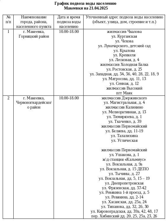 Завтра, 21 апреля, в Макеевке будет организован подвоз воды для жителей, в дома которых из-за недостаточного количества подаваемой воды не поступила вода в установленный графиком день.