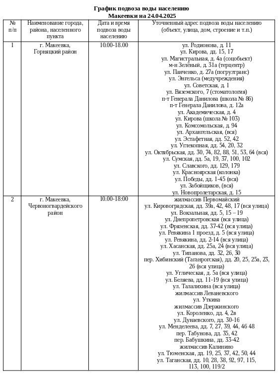 Завтра, 24 апреля, в Макеевке будет организован подвоз воды для жителей, в дома которых из-за недостаточного количества подаваемой воды не поступила вода в установленный графиком день.