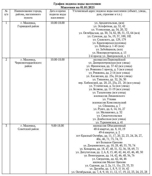 Завтра, 1 мая, в Макеевке будет организован подвоз воды для жителей, в дома которых из-за недостаточного количества подаваемой воды не поступила вода в установленный графиком день.