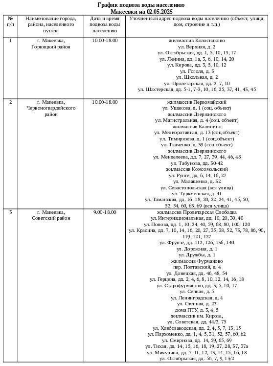 График подвоза воды населению городского округа Макеевка