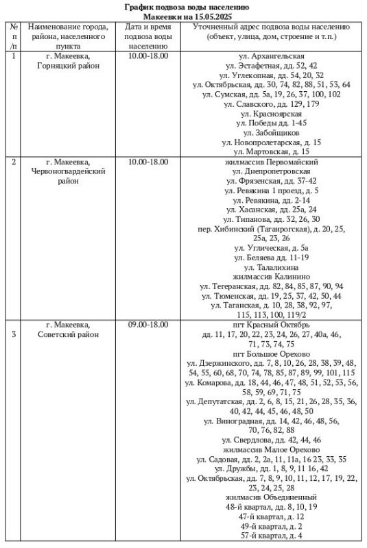 Завтра, 15 мая, в Макеевке будет организован подвоз воды для жителей, в дома которых из-за недостаточного количества подаваемой воды не поступила вода в установленный графиком день.