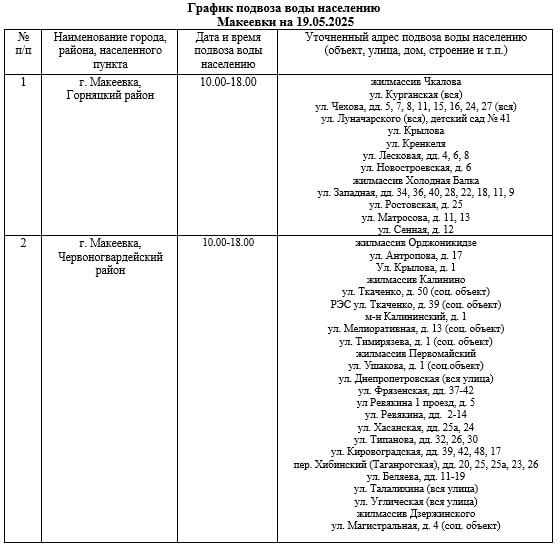 Завтра, 19 мая, в Макеевке будет организован подвоз воды для жителей, в дома которых из-за недостаточного количества подаваемой воды не поступила вода в установленный графиком день.