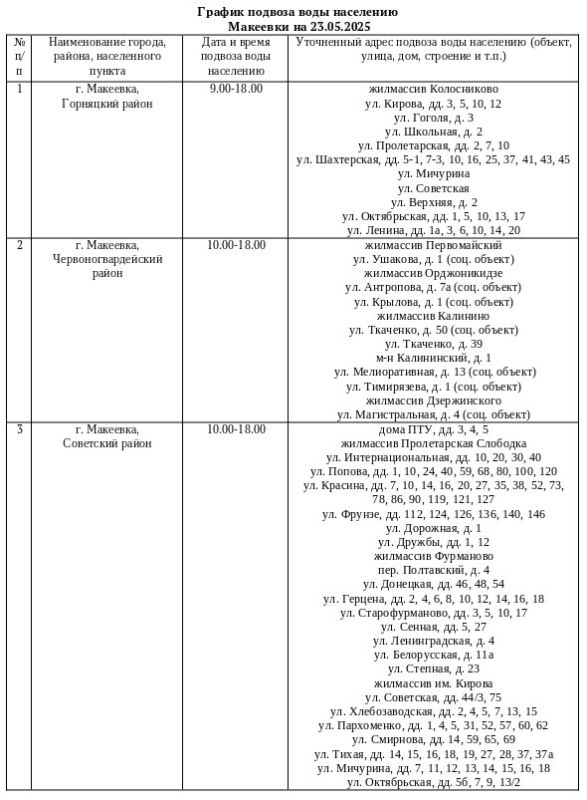 График подвоза воды населению городского округа Макеевка