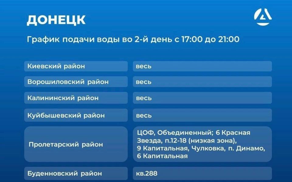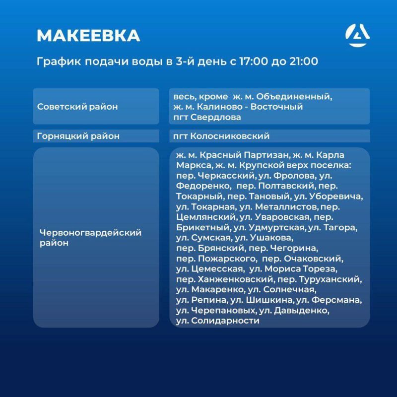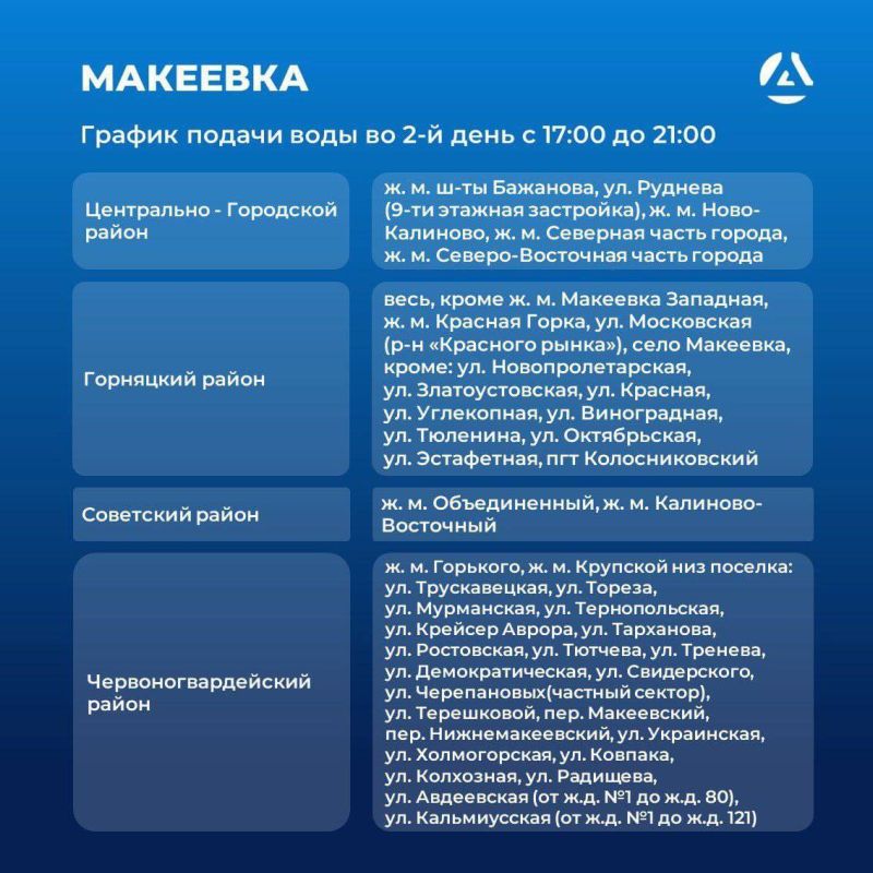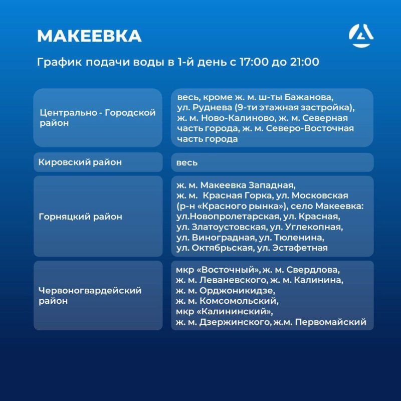 ГРАФИКИ ПОДАЧИ ВОДЫ В ДОНЕЦКЕ И МАКЕЕВКЕ