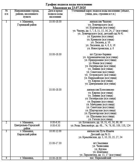 График подвоза воды населению городского округа Макеевка