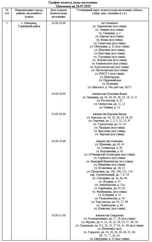 Завтра, 26 июля, в Макеевке будет организован подвоз воды для жителей, в дома которых из-за недостаточного количества подаваемой воды не поступила вода в установленный графиком день.
