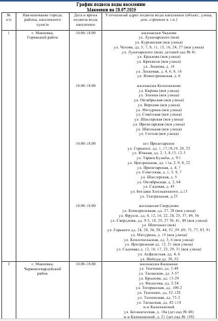 Завтра, 28 июля, в Макеевке будет организован подвоз воды для жителей, в дома которых из-за недостаточного количества подаваемой воды не поступила вода в установленный графиком день.