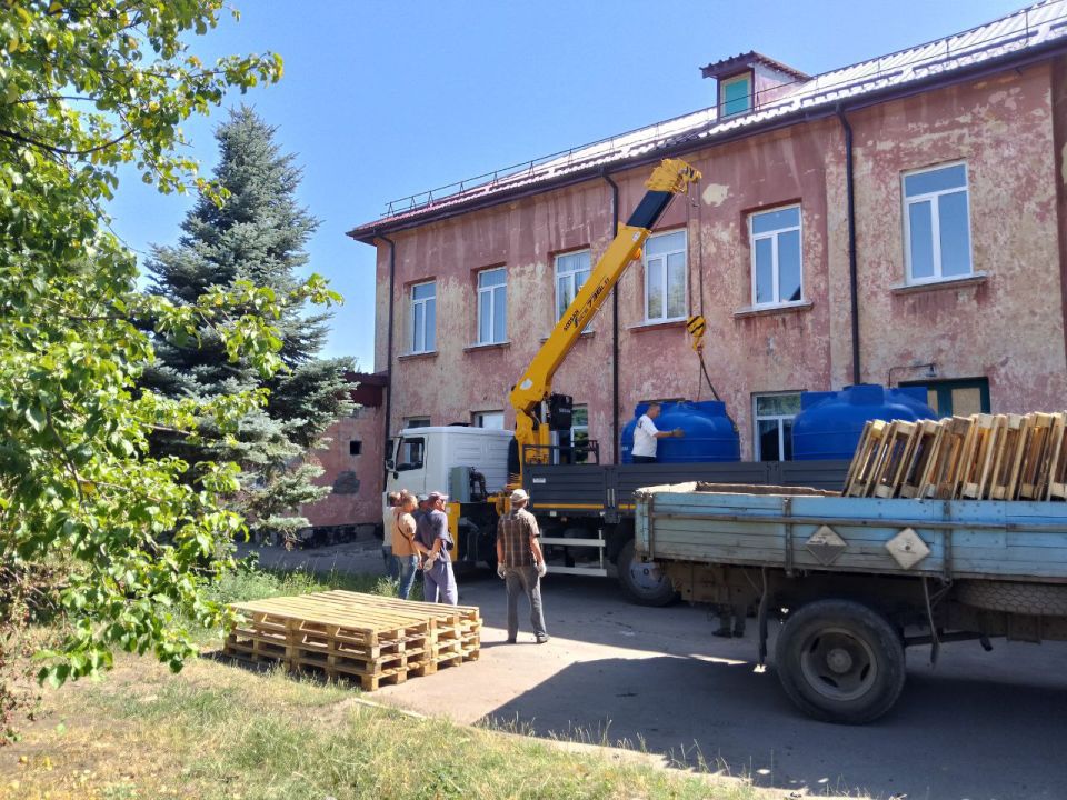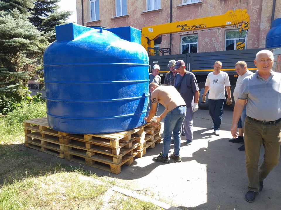 Сегодня, 30 июля, с целью обеспечения населения водой в Кировском внутригородском районе города Макеевки проведены работы по установке ёмкостей для разбора технической воды по адресам: