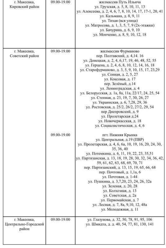 График подвоза воды населению городского округа Макеевка
