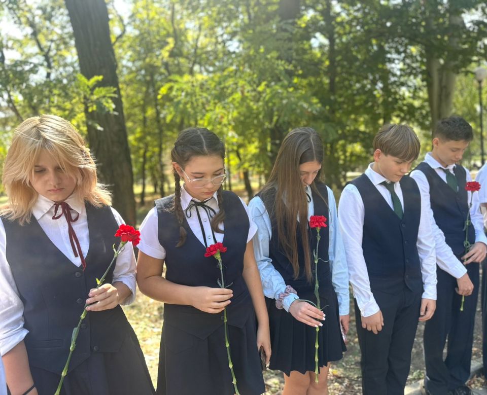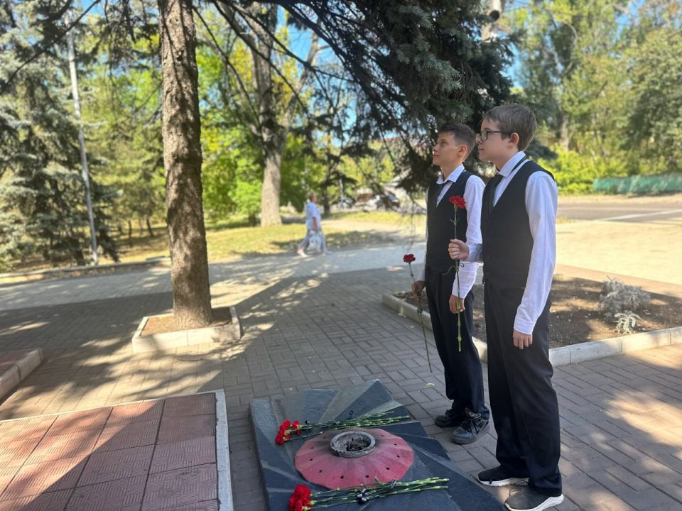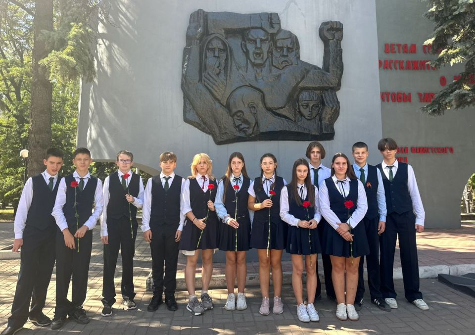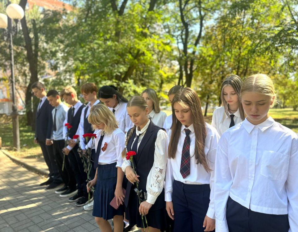 12 сентября 2025 года учащиеся 8-х классов ГБОУ "ГИМНАЗИЯ Г.О. МАКЕЕВКА" приняли участие в Линейке Памяти, чтобы почтить память миллионов людей, ставших жертвами бесчеловечной идеологии нацизма.