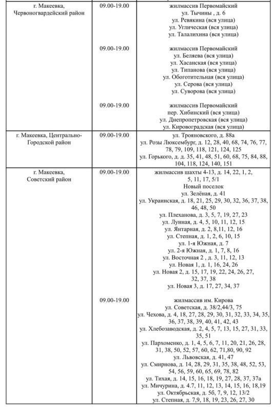График подвоза воды населению городского округа Макеевка