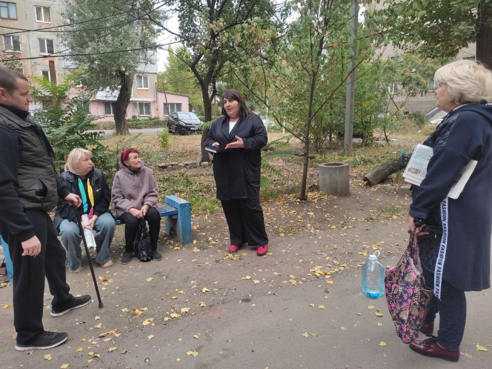 В ходе беседы жители отметили низкий напор воды в квартирах, а также необходимость установки крана. Татьяна Синяговская напомнила присутствующим адреса, по которым установлены ёмкости с технической водой для нужд населения. Также сообщила информацию о том, что на данный момент установлено 1494 емкости, а также 5350 кранов на первых этажах домов, где вода не поднимается в квартиры и отметила, что работы в данном направлении будут продолжаться.