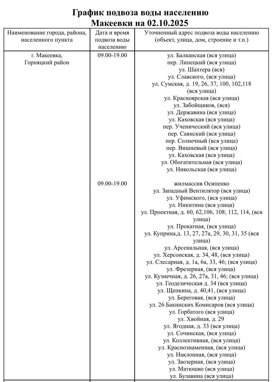 Завтра, 2 октября, в Макеевке будет организован подвоз воды для жителей, в дома которых не поступила вода в установленный графиком день.