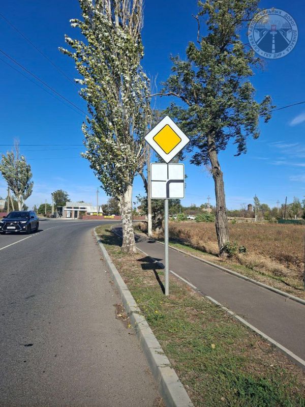 На автодороге Павловка - Петровское - /Белгород - Старобельск - Луганск - Донецк - Мариуполь/произвели операционный контроль по устройству дорожных знаков согласно ПОДД